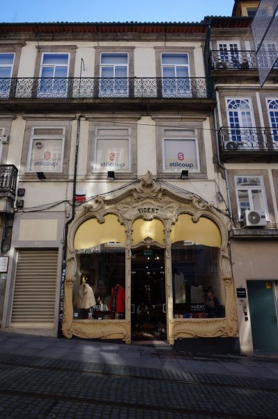 Foi originalmente uma ourivesaria, passando posteriormente para a propriedade de um comerciante espanhol que colocou o seu nome na fachada principal. A construção terá iniciado em 1914, data em que se documenta o fornecimento do ferro da frente de loja (deventure) por parte da empresa de fundição portuense Companhia Aliança. Notoriamente inspirados pelo movimento Arte Nova são o interior e a fachada da loja. Nesta, amplas molduras curvilíneas de ferro fundido cobrem todo o alçado principal. Estas molduras de ferro, inicialmente douradas, recebem uma decoração de concheados, grinaldas e folhas, elementos decorativos alinhados com o vocabulário Arte Nova. No remate, uma cartela tem inscrito o nome da loja – Vicent. Atualmente o estabelecimento é um pronto-a-vestir.